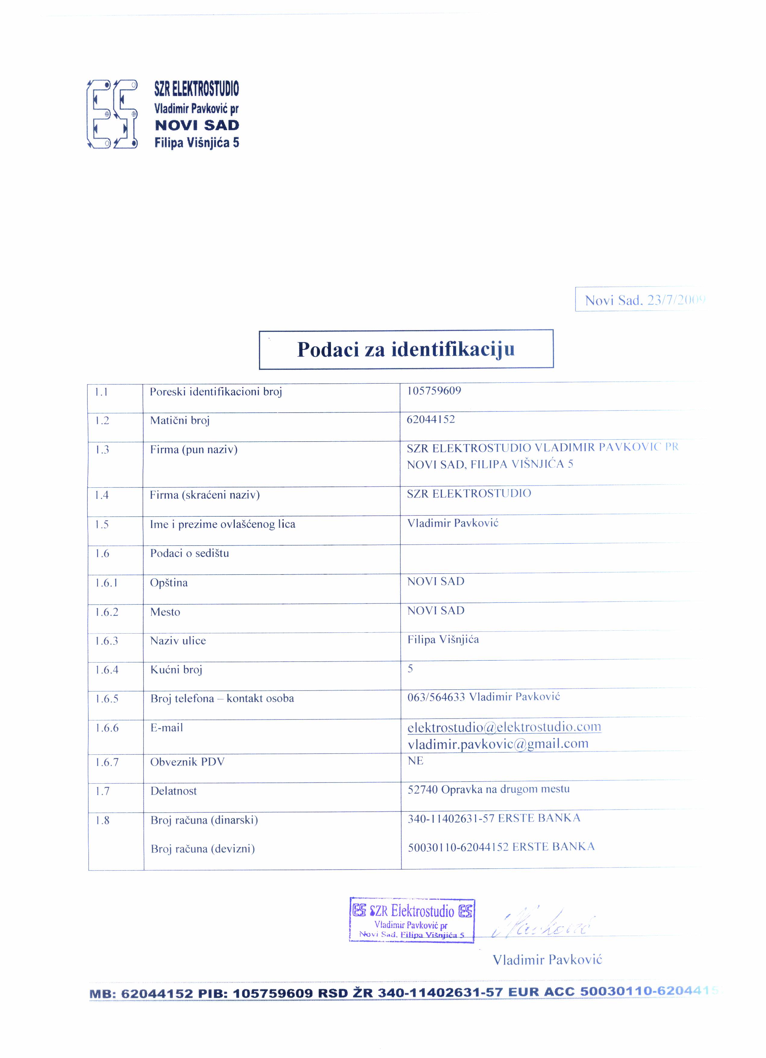 Sva prava zadrzana - vlasnistvo SZR Elektrostudio |